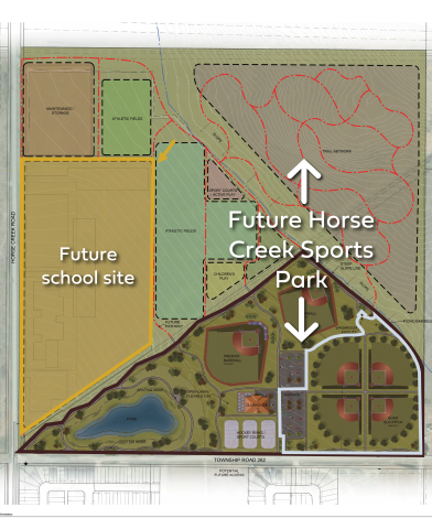 After nearly a decade of visioning, planning and collaboration, Cochrane Council has approved a key step forward in the development of Horse Creek Sports Park, including site servicing for a future high school and recreational amenities.